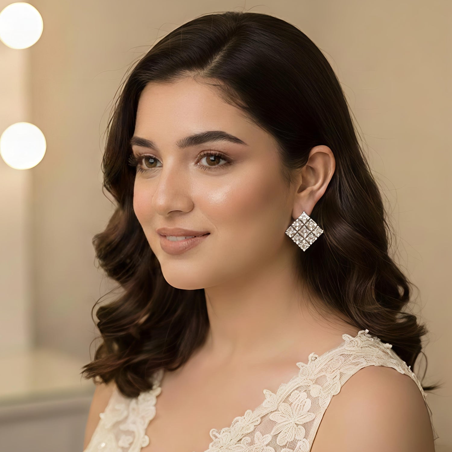 Gold Plated Square Jhumka Earrings with Crystals & Pearl Drops – Traditional Wedding Jewelry for Women