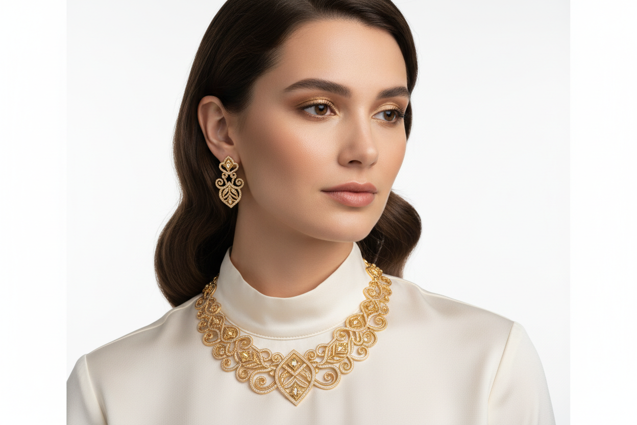 Luxury Gold Drop Earrings with Froza Stud – Elegant Designer Party Wear Earrings for Women