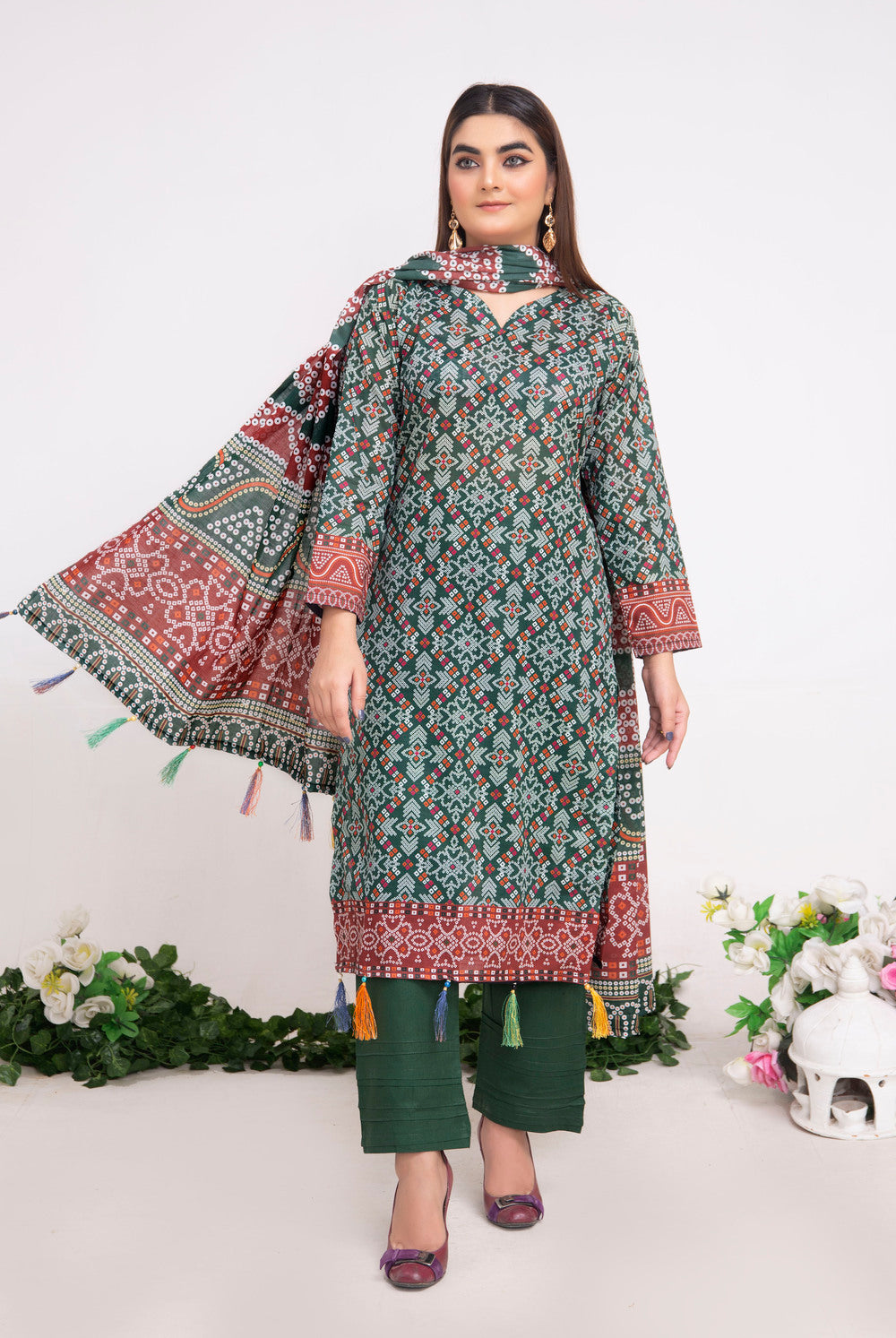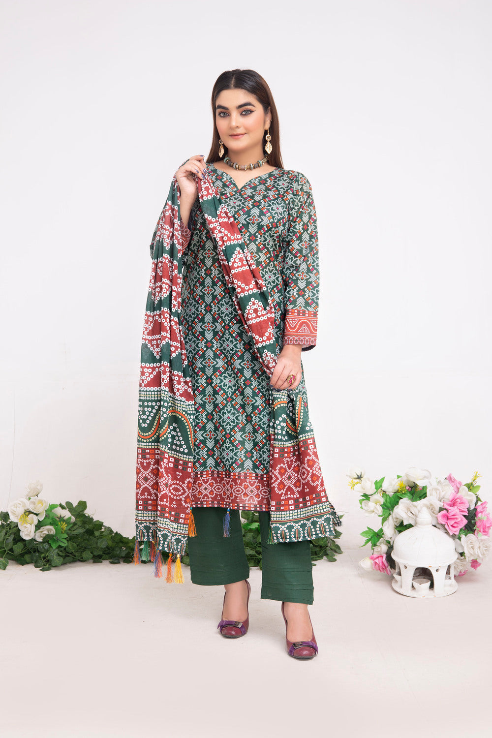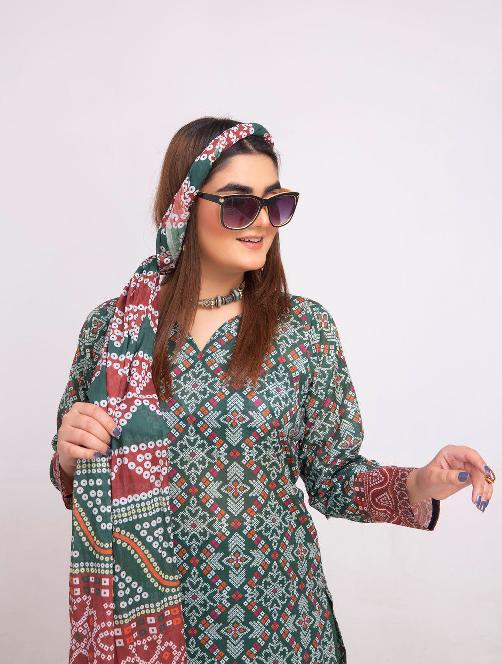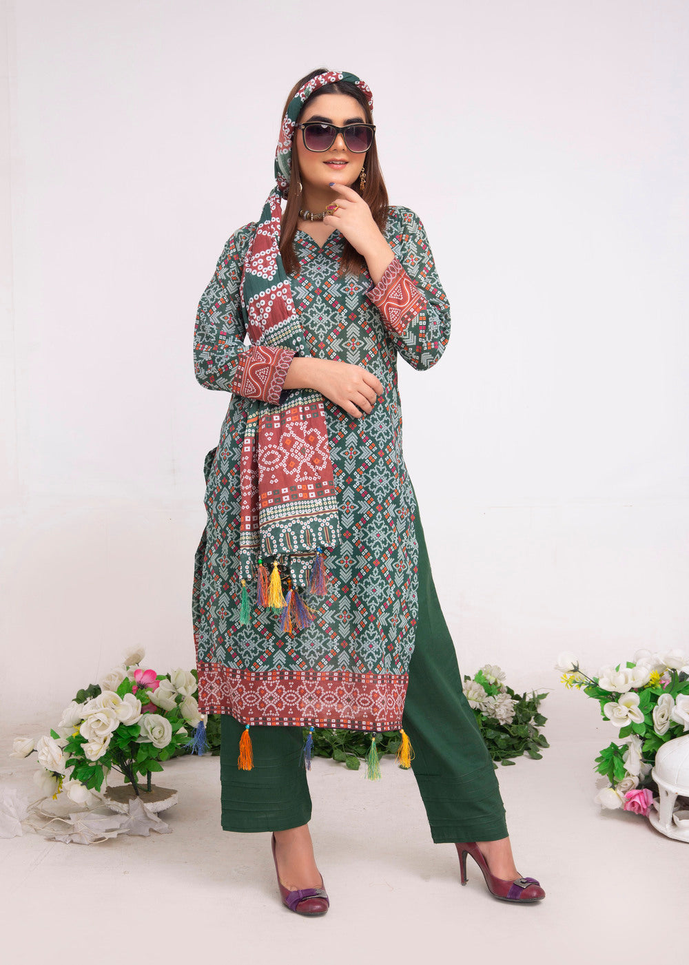 A beautifully coordinated printed dupatta that adds a flow of elegance and charm to your overall look. -