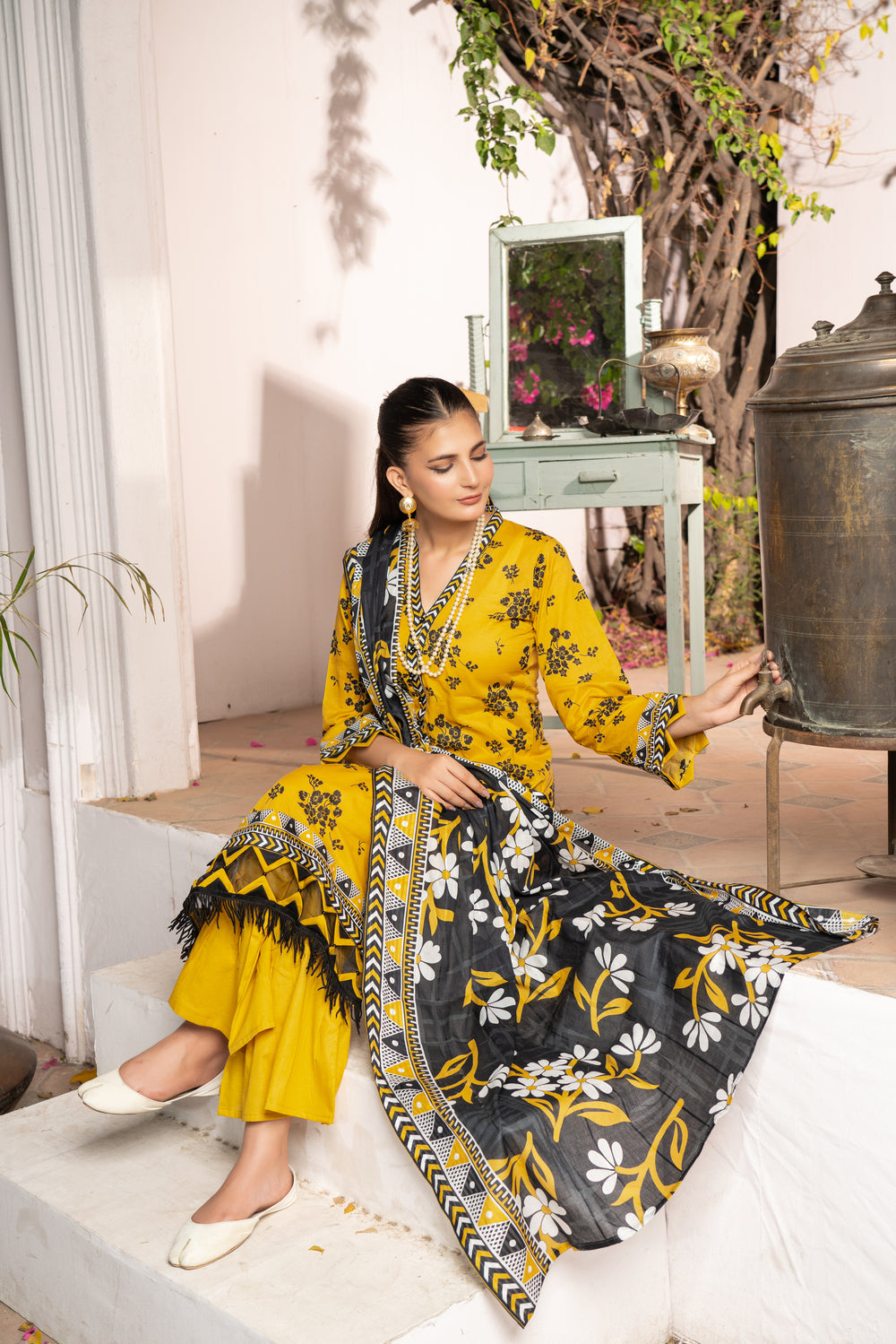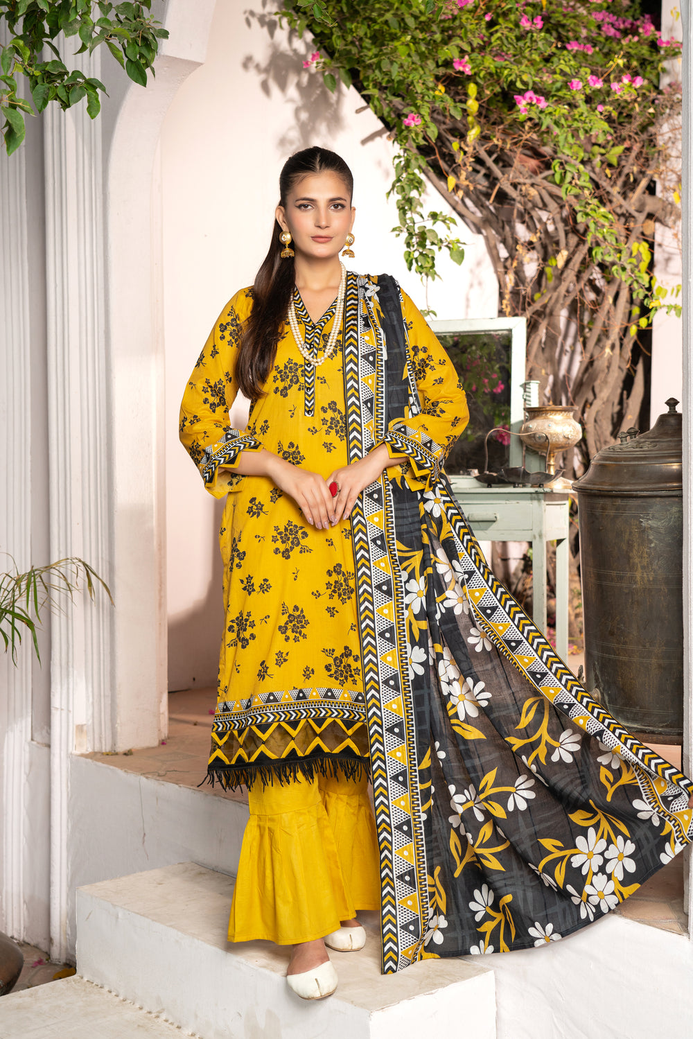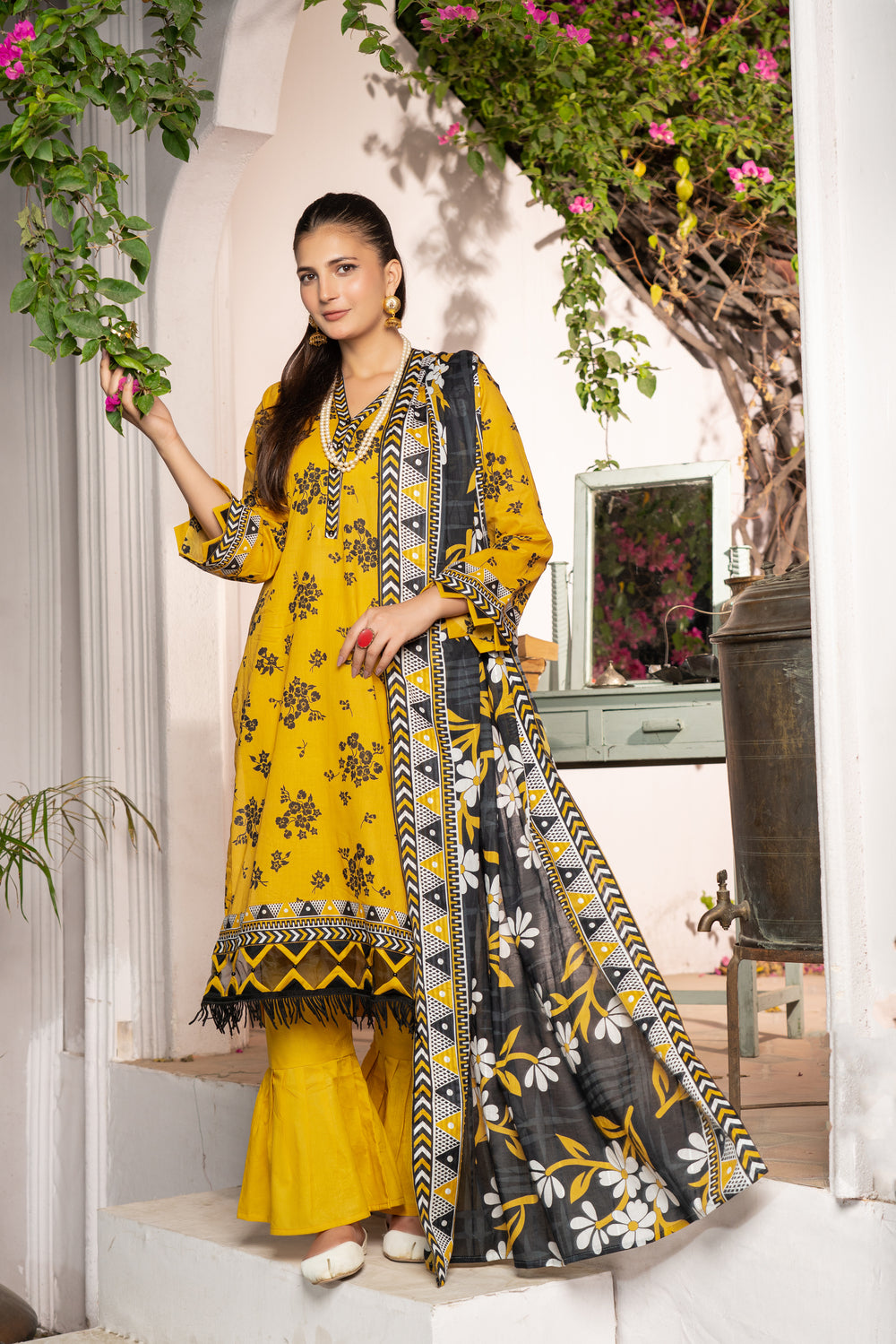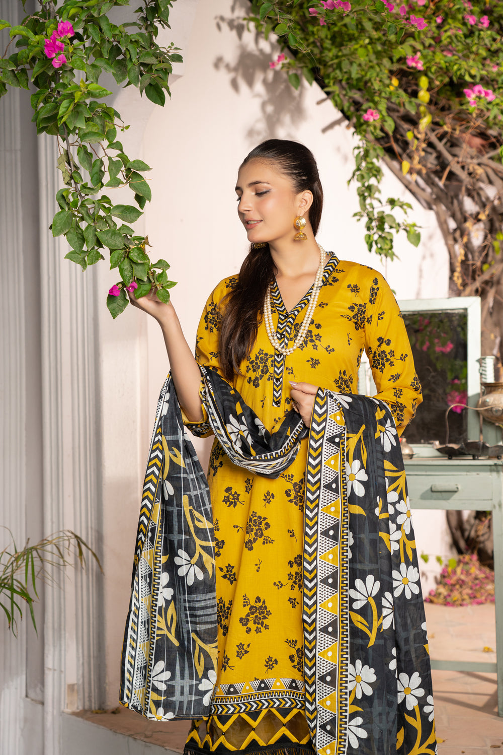 A beautifully coordinated printed dupatta that adds a flow of elegance and charm to your overall look. -
